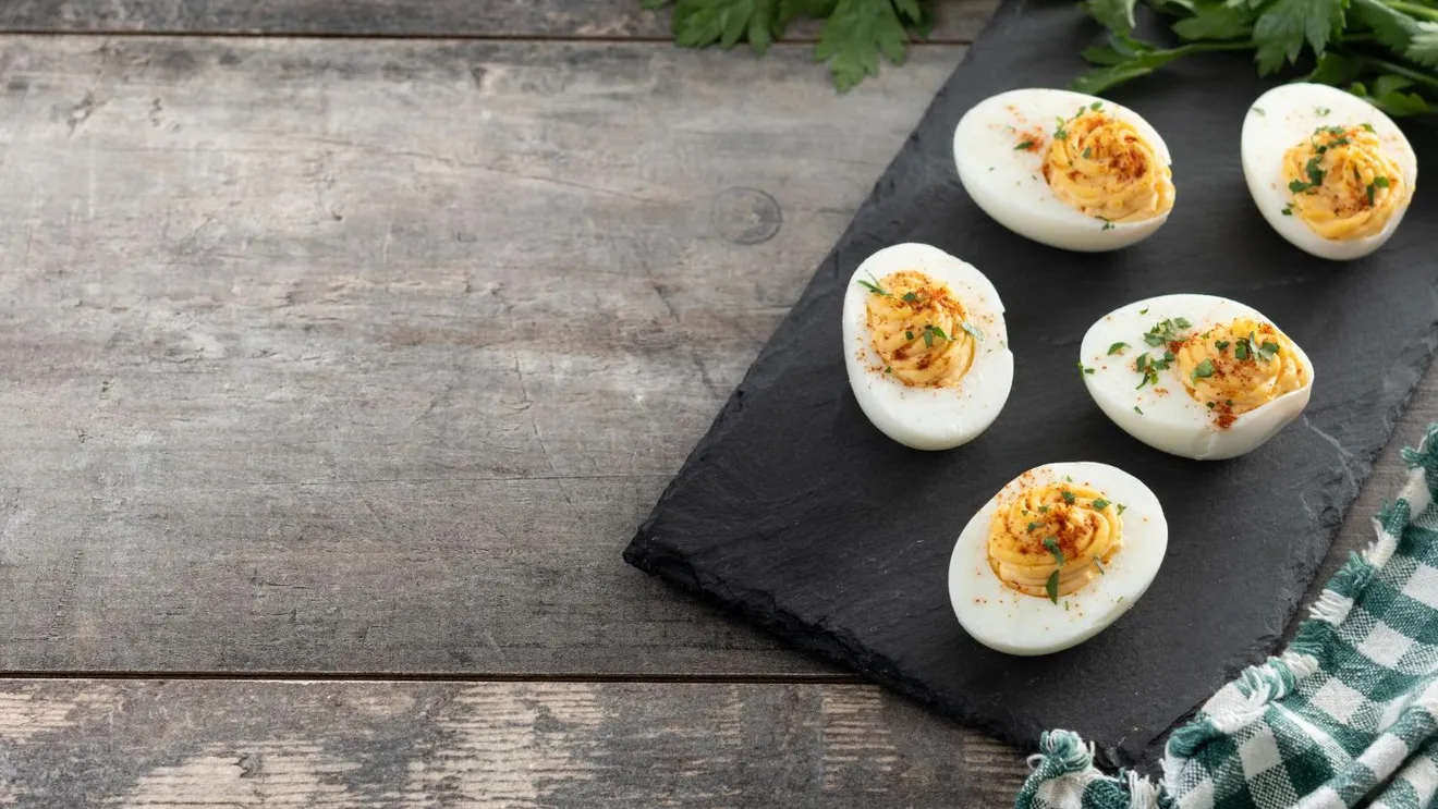 Фаршированные яйца с печенью трески — классическое блюдо для праздника, сочетающее простоту и изысканность. Список ингредиентов: